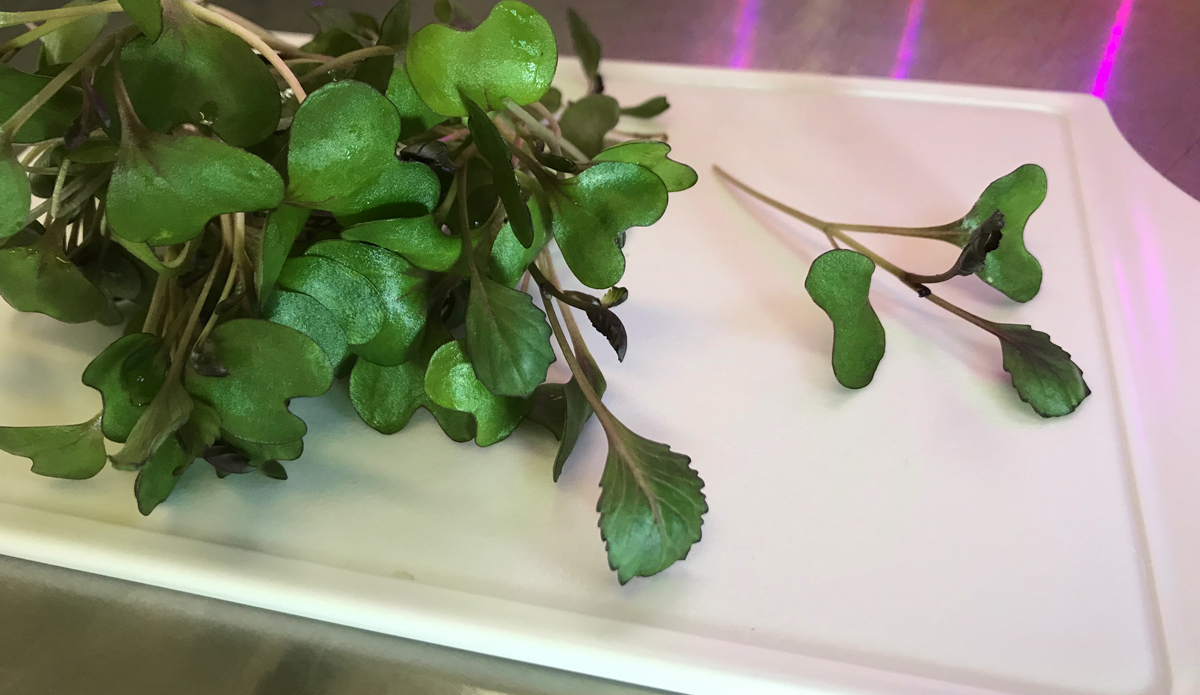 Red cabbage micros have dark green, glossy leaves with purple veins and leaf margin. You're treated to a mild brassica flavor with a touch of heat. A mainstay in our mild micro greens salad mix.